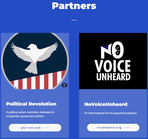 The FiftyFifty.One website lists a number of partner organizations on their website, one of those being Political Revolution.