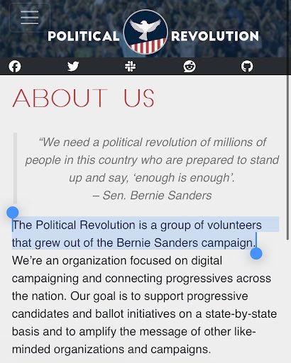 The “About Us” section on Political Revolution’s @OurPoliticalRev website says that the organization is “a group of volunteers that grew out of the Bernie Sanders @SenSanders campaign.”