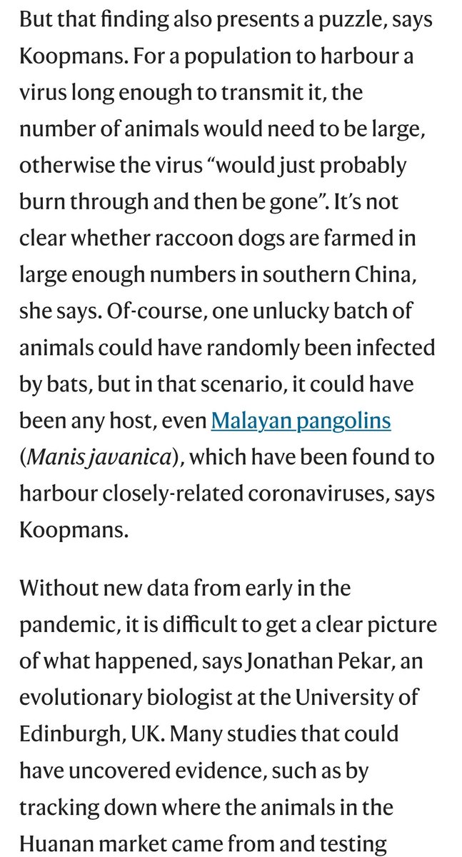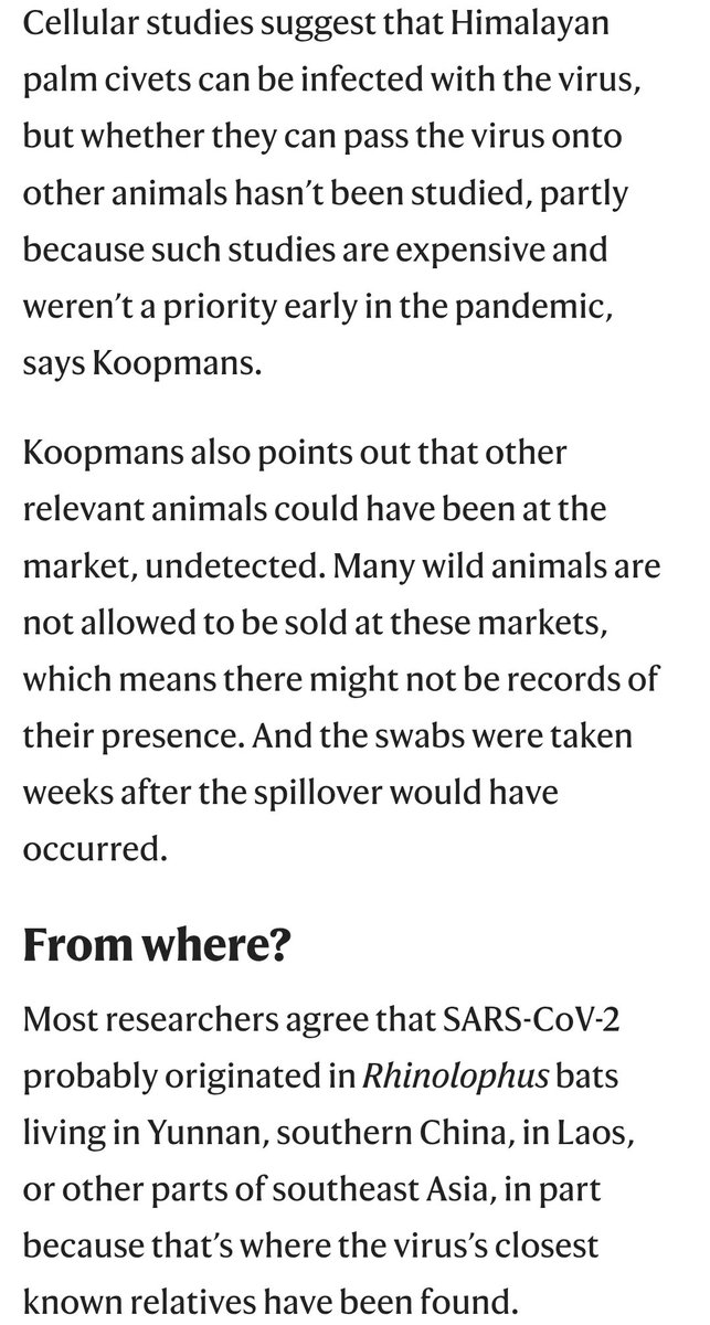Fauci conspiracy to cover up the lab-origin hypothesis (ao Marion Koopmans, stenographer Maarten Keulemans), wondered where COVID transmitted *intensely* to gain a FCS; "no way selection could occur in the market. Too low a density of mammals."