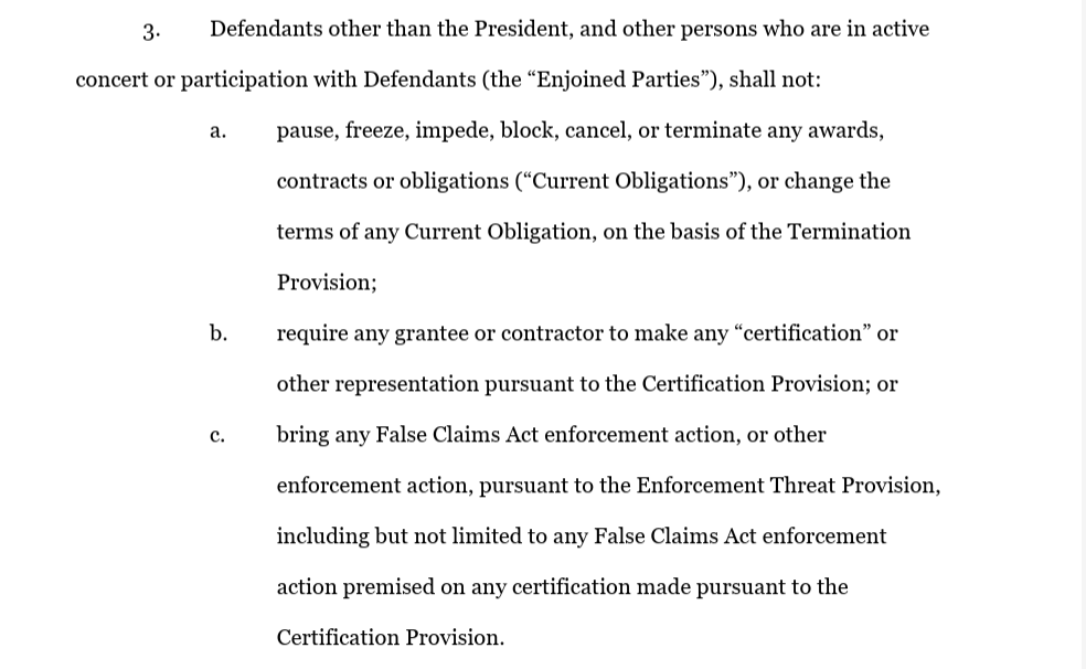🚨🚨🚨BREAKING: Federal judge enters preliminary injunction barring Trump Administration from canceling DEI grants, requiring DEI certifications, or enforcing a federal statute, False Claims Act. 1/