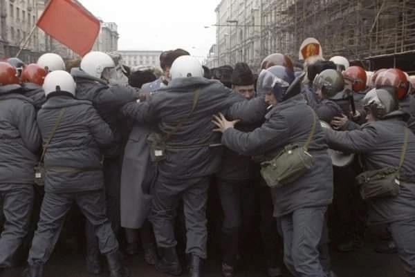 El 23 de febrero de 1992 tuvo lugar en Moscú una manifestación de miles de personas en honor del Día del Ejército y la Armada Soviéticos. La manifestación fue reprimida muy violentamente por la policía. +