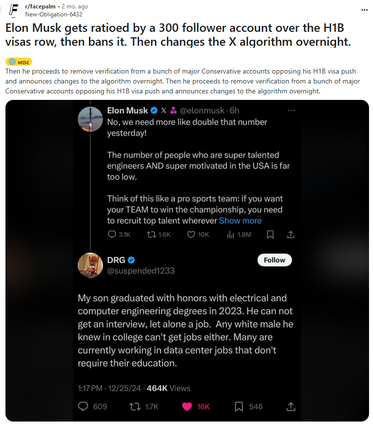 When the owner of a certain social media platform was ratioed, which was rare given that he was the most-followed on it, bans and algorithm changes would occur. Couldn't have that.