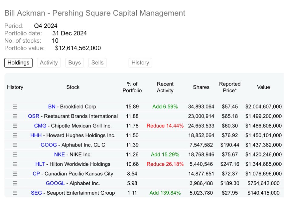 Here's what their portfolios looked like as of the end of Q4 ⬇️