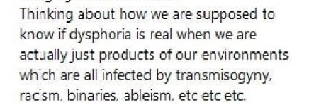 He questions if he can be sure "dysphoria" is even real.