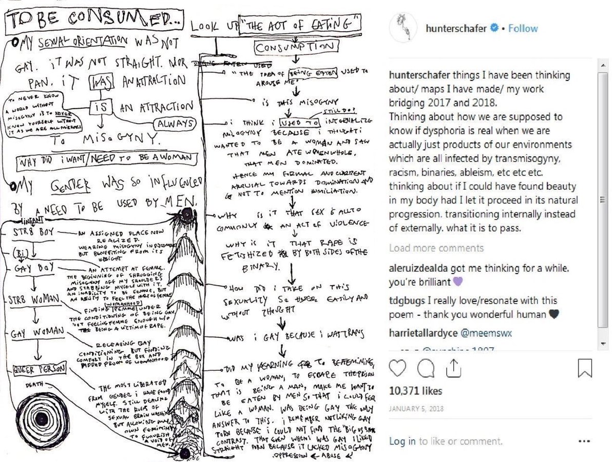 In a now-deleted post to Instagram less than 2 years later, Hunter recounts his gender journey, characterizing it as motivated by a misogyny fetish.