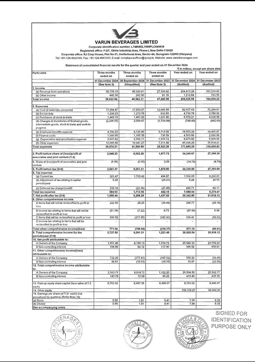 3 |❄️Varun Beverages Q3FY24 Results (YoY):