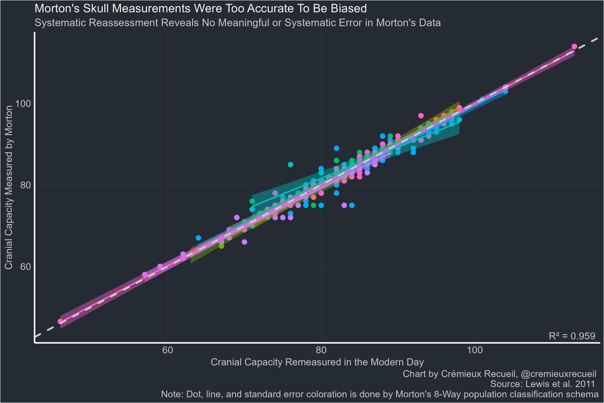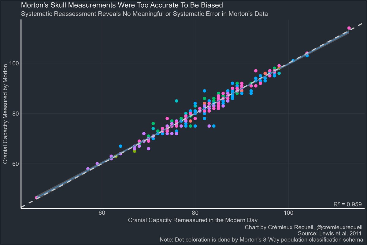 The degree to which Morton's measurements held up is so extreme that there is just no room for him to have been a biased measurer.