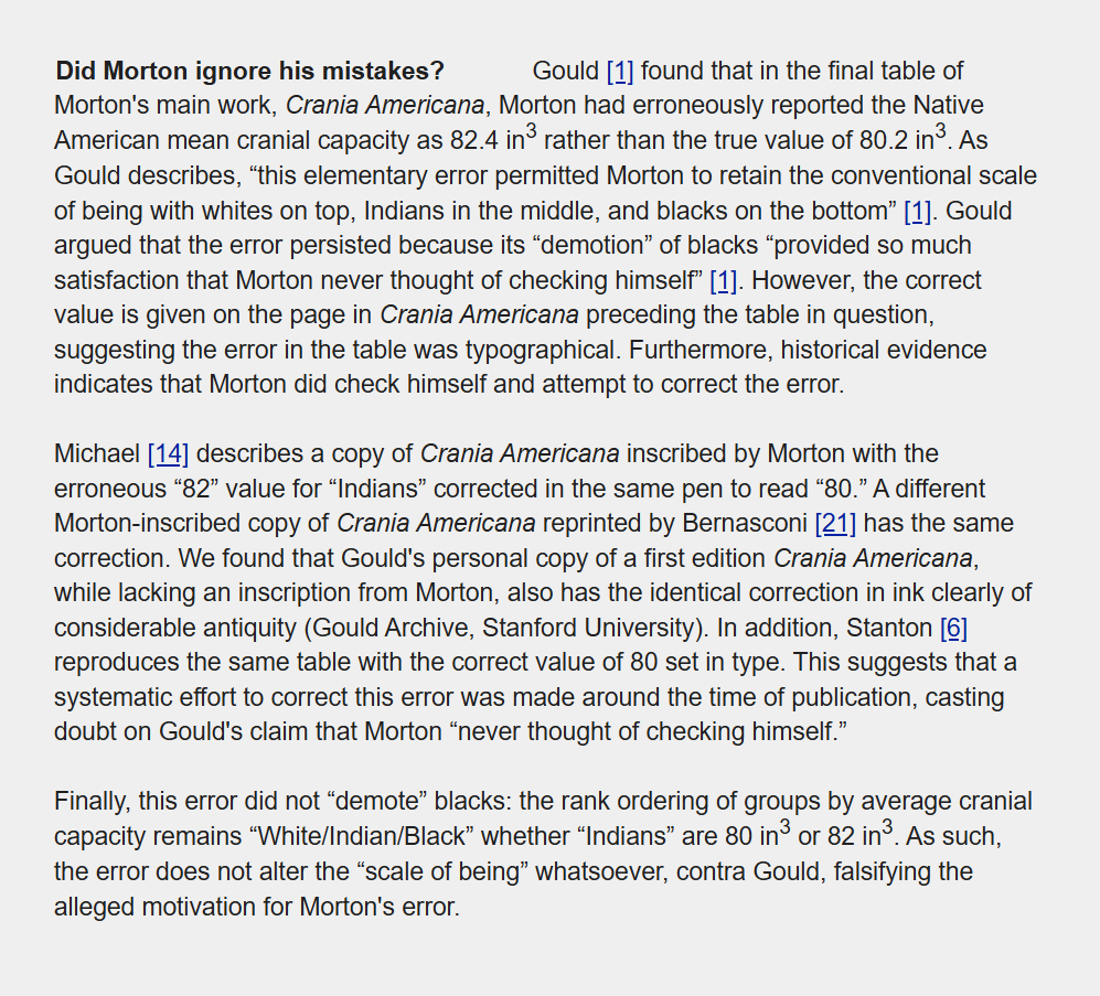 But perhaps Gould's most revealing comment was that Morton never corrected his errors.