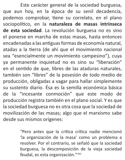 Ni el mov. social espontáneo ni sus formas de conciencia pueden separarse de la reforma del Estado capitalista, ni de su rearticulación corporativa tendiente a la fascistización. La asimilación de aquellos y su contribución objetiva al corporativismo es una cuestión inmanente.