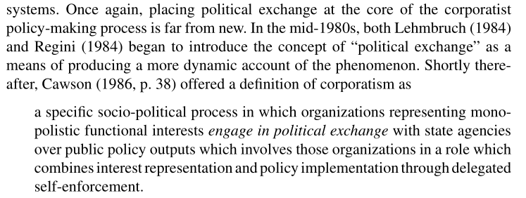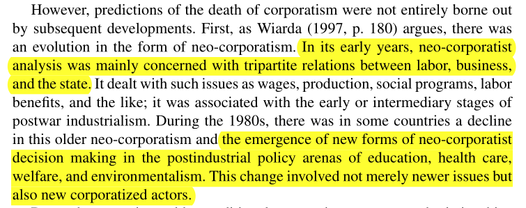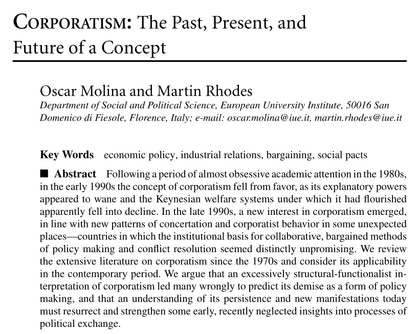 Como dato interesante, entre la academia se dieron debates durante décadas en torno al concepto del corporativismo, su aplicación en la actualidad, etc. Aunque ya con sus 20 años, enlazo un artículo para curiosear: researchgate.net/publication/24…Image