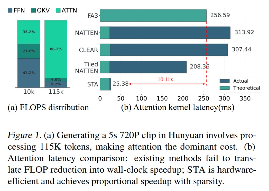 Sliding Tile Attention (STA) speeds up video generation up to 3.53x times.