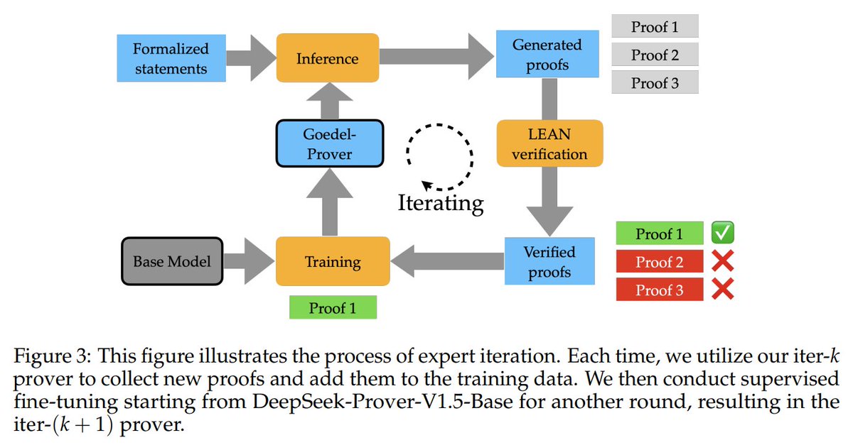 - Achieves 57.6% Pass@32 on miniF2F using expert iteration and statement formalizers.