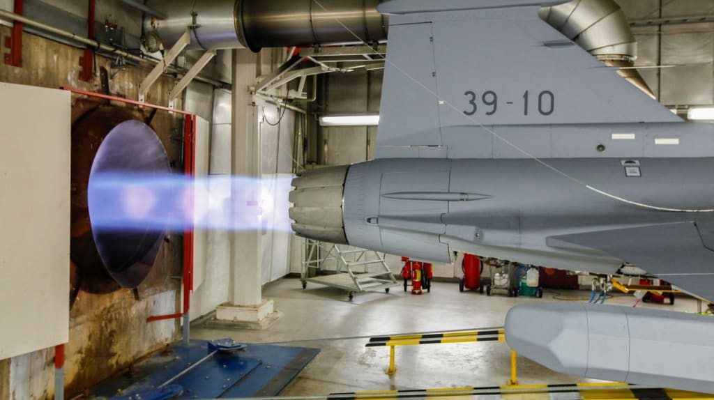 Gripen E/F engine is an American made GE F414-39E engine. Engine production in Trollhättan ceased in 2012 and GKN Aerospace in Trollhättan does only provide engine product support.