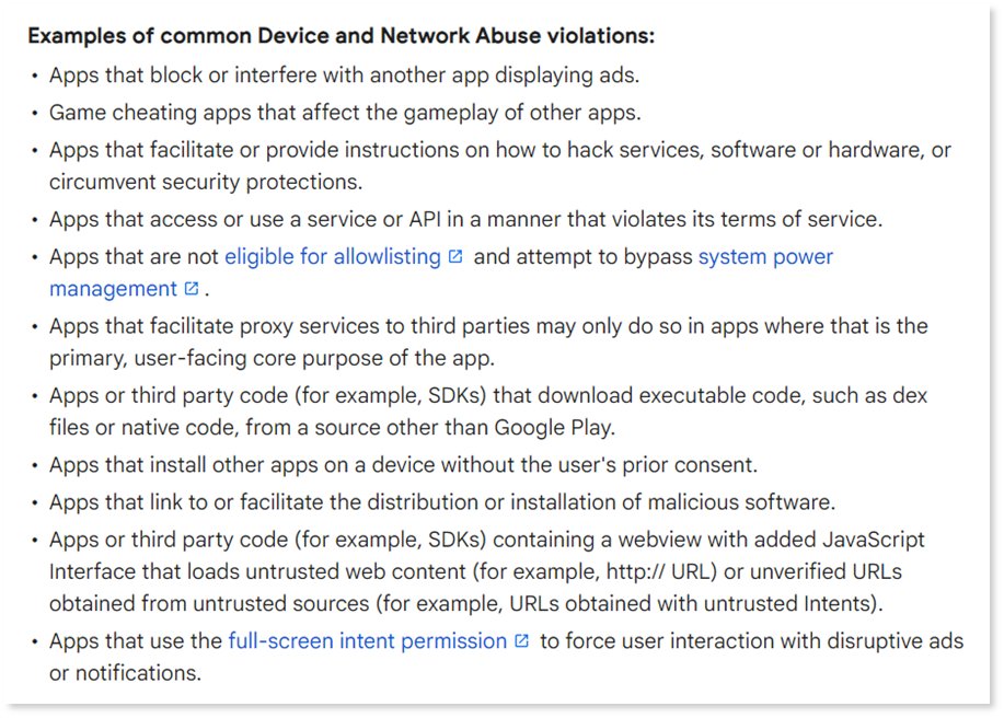 9) We believe $APP risks Google Play fallout, as this process works via $APPs app-level SDKs, which contain "binding" permissions that effectively replicate permissions that the Play store has already banned elsewhere, for obvious security reasons.