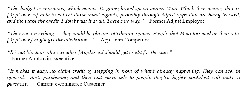 11) $APP might argue this is only to ensure customer quality, but numerous experts suggested to us that the true purpose is to ensure that $APP can see Meta's existing data through MAX, then "copy Meta's homework" via last-click insertion or otherwise to take the credit.