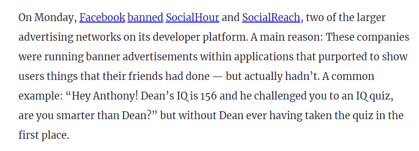 14) $APP CEO Foroughi also created Social Hour in 2008 and was its CEO from August 2008 to July 2010. Social Hour was banned from Facebook in 2009 for "misleading/scam-like advertisements."