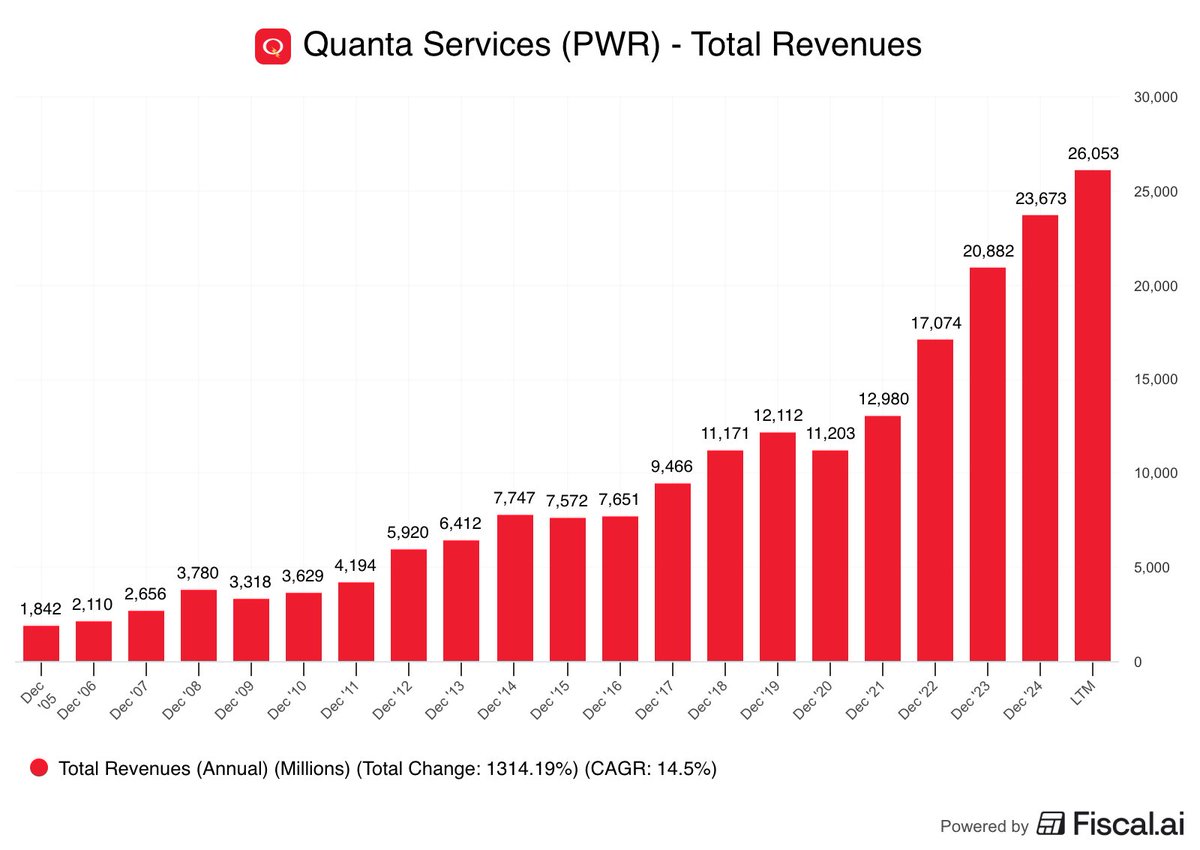 As one of the largest builders of electric transmission & distribution lines, Quanta is one of the first calls a builder makes before laying out CapEx.