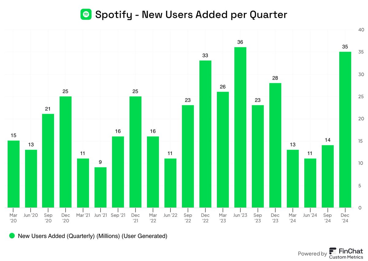 Last quarter Spotify added 35 million new MAUs. The 2nd highest quarter in the company's history.