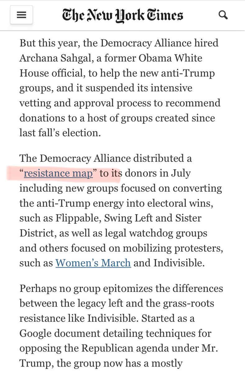 Ok here’s the 2017 New York Times article where I found the Soros Democracy Alliance Resistance Map. This was impossible to find, so imagine finding it here?