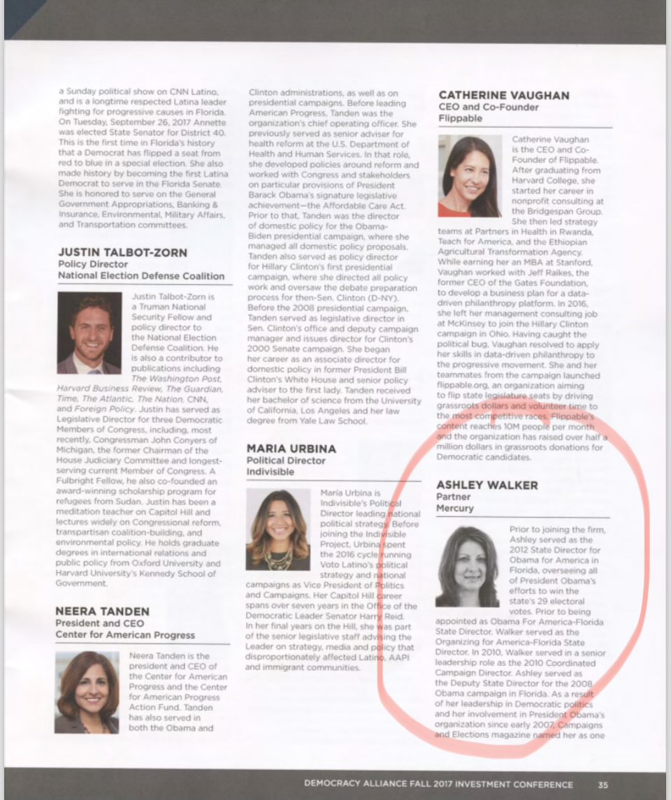2017 was the year that the Democracy Alliance hired Archana Sahgal, a former Obama White House official, to help the new anti-Trump groups.