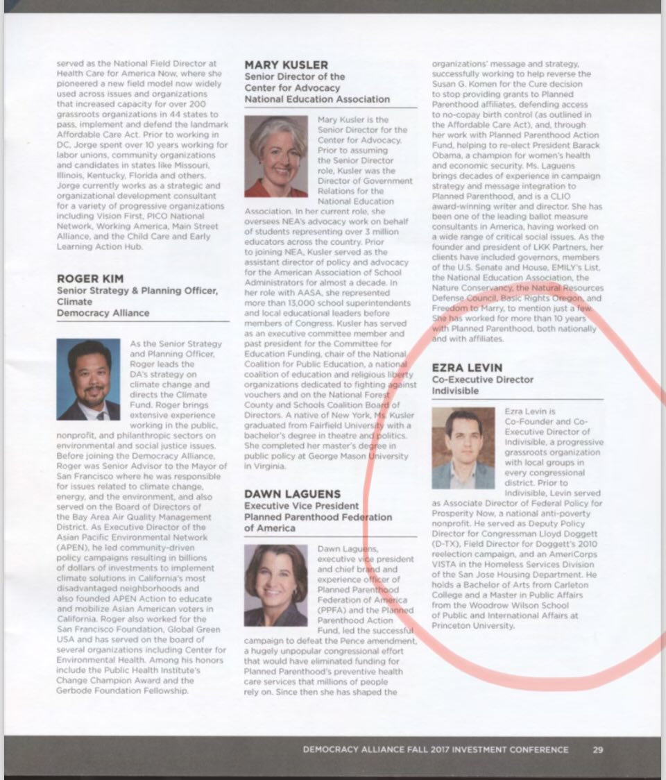 Here’s an additional Soros Democracy Alliance Resistance document. Indivisible is throughout this doc a good bit. Including the presence of a cofounder, Ezra Levin.