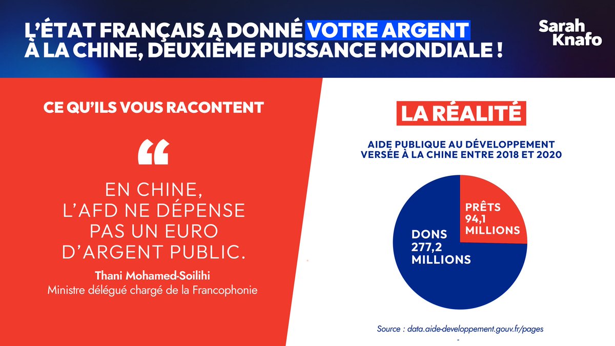 3ème mensonge : lorsque j’ai dit que nous aidions même la Chine, deuxième puissance mondiale, le ministre de la Francophonie m’a répondu que la « France n’y dépensait pas un euro d’argent public ». FAUX. ❌