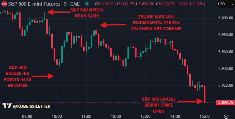 In just 5 hours today, the S&P 500 erased -$800 BILLION in market cap with 6 swings of 50+ points.