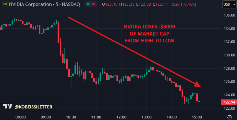 For example, Nvidia, $NVDA, has fallen ~10% during INTRA-DAY trade today, from high to low.