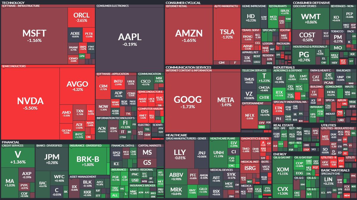 Meanwhile, the S&P 500 is down -1.2% and the Nasdaq is down -400 points.