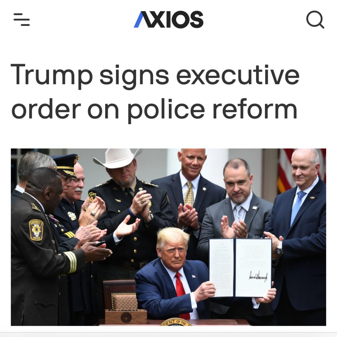 In response, Trump issued an executive order that reflected best practices in policing to keep officers and communities safe and hold officers who violate people’s civil rights accountable.
