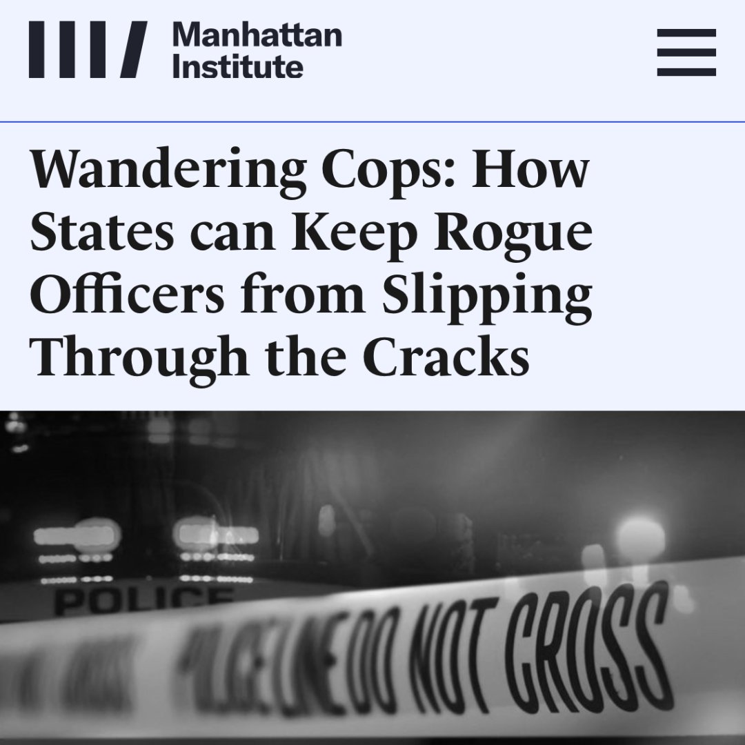 The point is that police misconduct records are critical to ensuring departments don’t hire bad or dangerous cops. So much so, that the conservative Manhattan Institute recommends departments report this information and review it as part of any applicant’s background check.