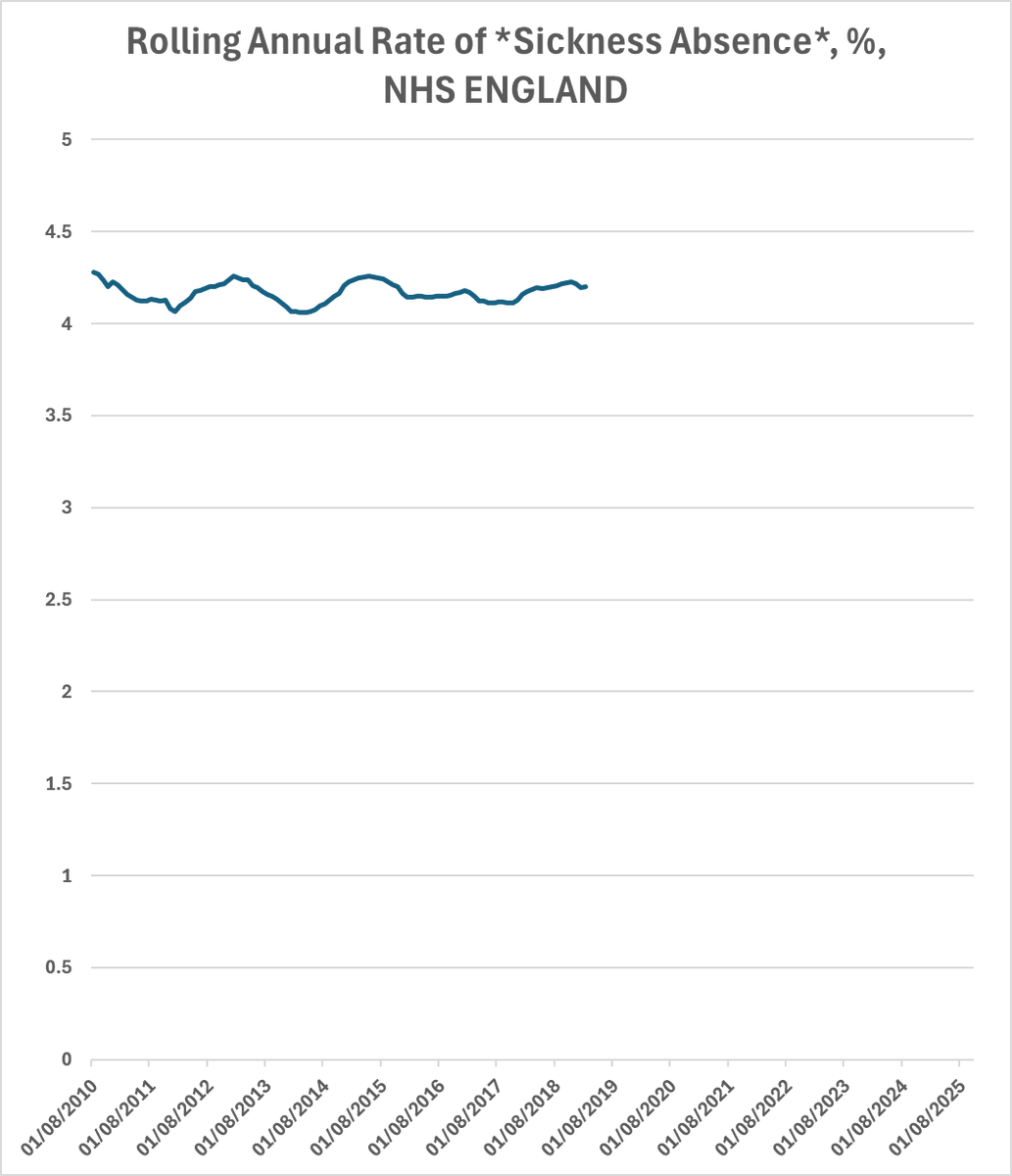 Here's a graph of the annual rate of sickness absence of NHS staff.