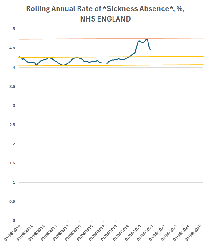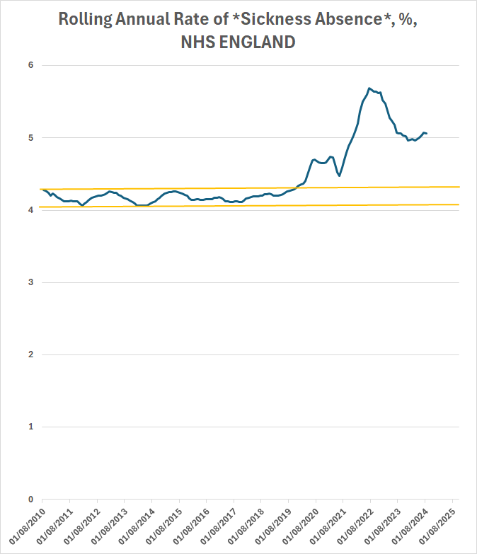 You can see one of those strands of data in the 'NHS England Sickness Absence Rates'.