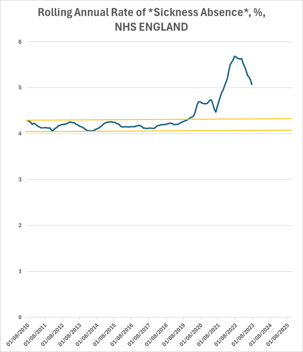 Currently the rolling annual rate of sickness sits at TWENTY FOUR PERCENT above the pre-pandemic average.