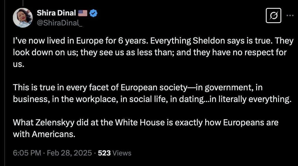 To the people defending Zelenskyy: watch the full video. His behavior perfectly encapsulates the disrespect, dislike, and even contempt the majority of Europeans hold toward Americans.