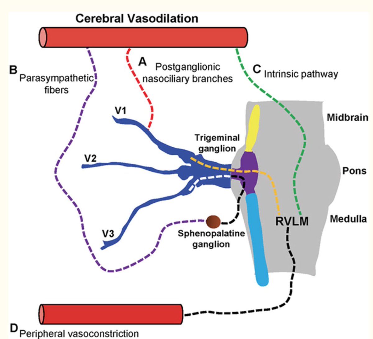 A. Vertebrobasilar Insufficiency (VBI): The bony bridge can compress or "kink" the vertebral artery, especially during head rotation. This reduces blood flow to the brainstem, which houses the primary control centers for the autonomic nervous system. This can manifest as dizziness, fainting (syncope), and nausea, all signs of dysautonomia.