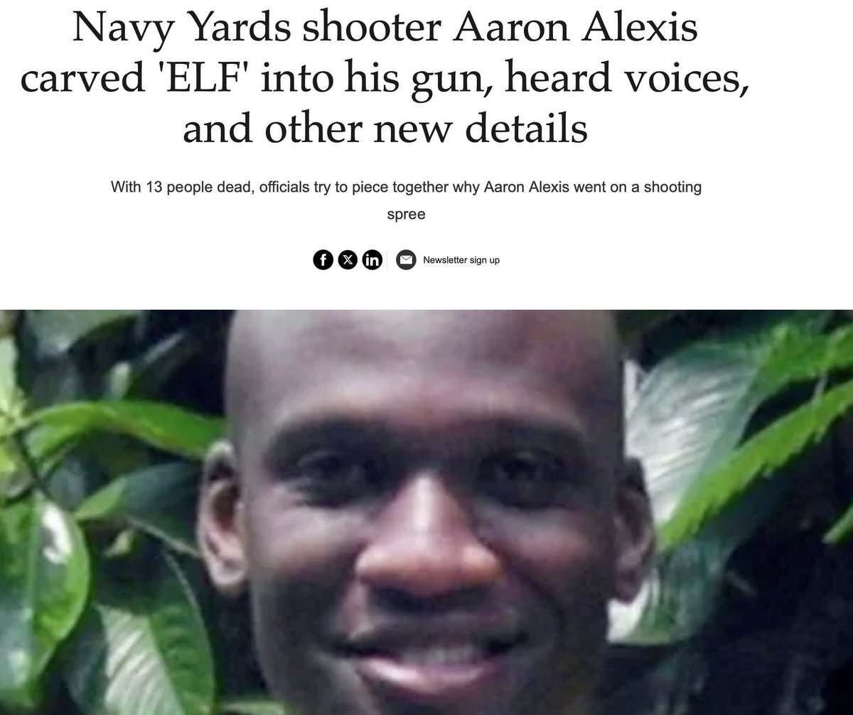 Navy Yards shooter Aaron Alexis carved 'ELF' into his gun, heard voices, and other new details that tell you he had been targeted by directed weapons. The Navy Yards shooter Aaron Alexis used a valid ID to enter a military complex in Washington, D.C. and start a shooting spree that claimed the lives of 13 people, including himself. He was African American as well. I think if you read my blog you'd know how these things are all connected = POMC/thalamic relays. congress.gov/bill/117th-con…