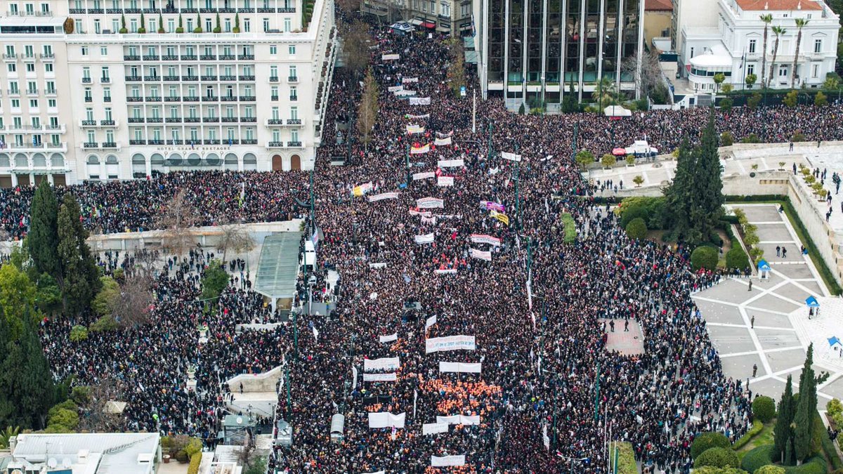 El motivo de la protesta fue el segundo aniversario del accidente ferroviario más mortífero de la historia del país, en la ciudad de Tempi, en el que murieron 57 personas. +