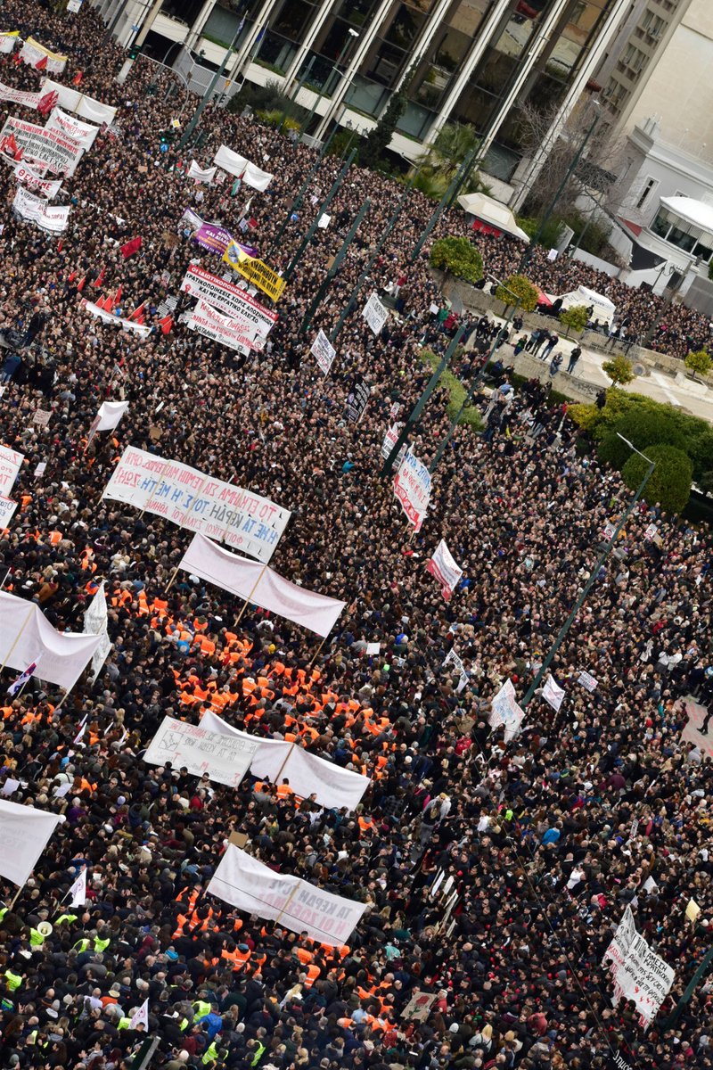 Cientos de miles de personas se unieron hoy a una huelga general en Grecia bajo el lema "¡Elegimos la vida, no el beneficio!". +
