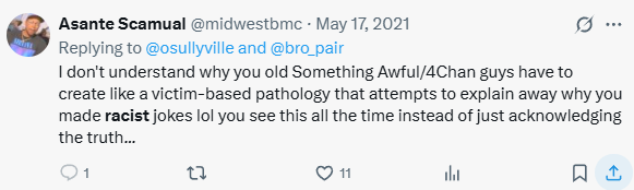 Dan led mass reporting campaigns to get right-wingers banned from Twitter, including myself. He also stalked me IRL when I lived in Chicago. The joke is that he got his start on Something Awful's "Fuck You and Die" board where he posted countless racial slurs back in the 2000s.