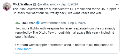 It all started when the vatnik geniuses over at the Ditch started seeing visions of Israeli weapons being transported over Irish air space from the US. There was nothing Ireland could do about it given that we have no jets capable of air interception.