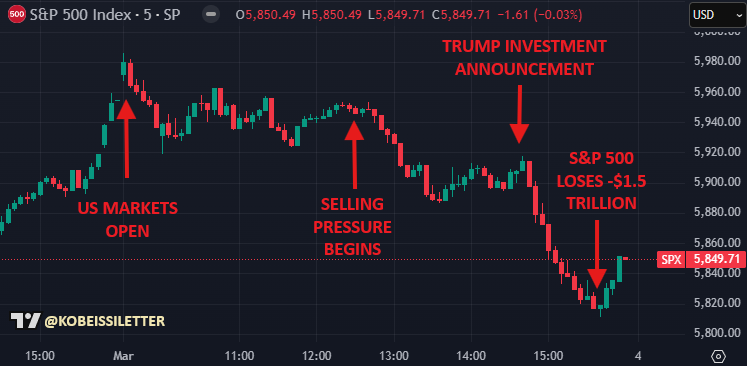 Then, at 1:00 PM ET, selling pressure began ahead of Trump's "investment announcement."