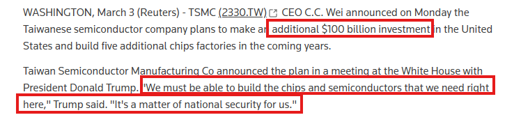 The investment announcement began on a strong note, with $TSM announcing a $100B investment in the US: