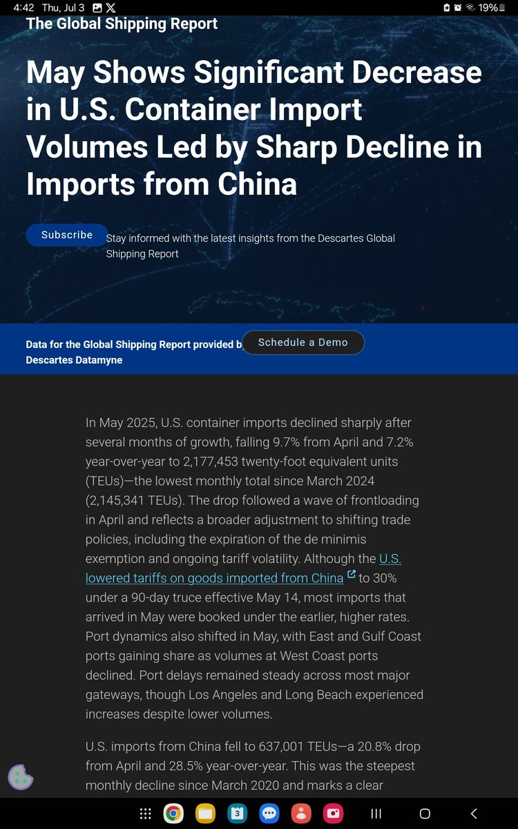Why this week? It takes a bout 11 days to get last months stats on imports and exports