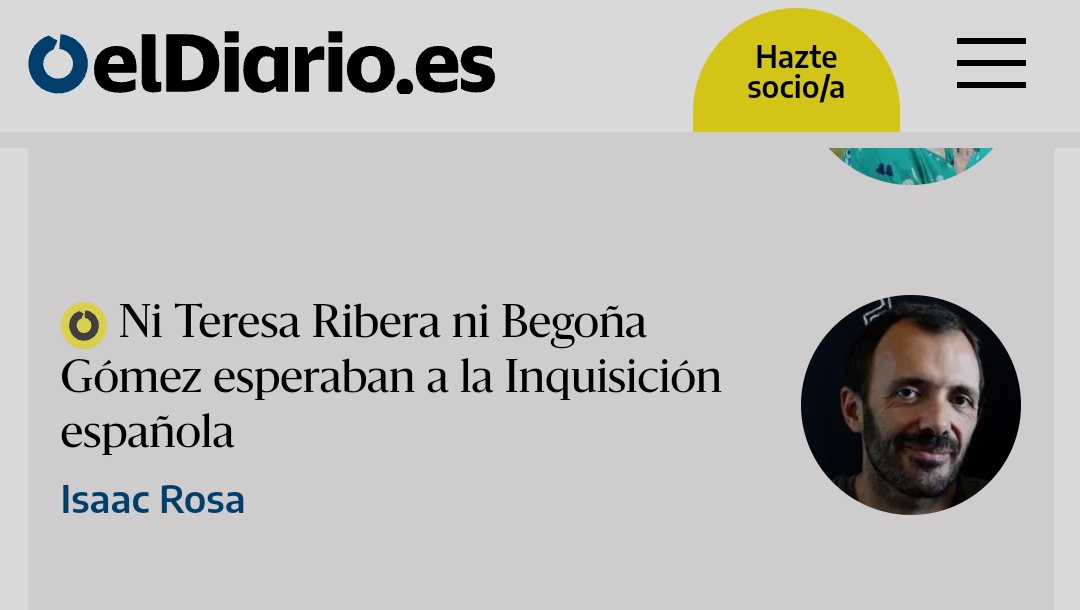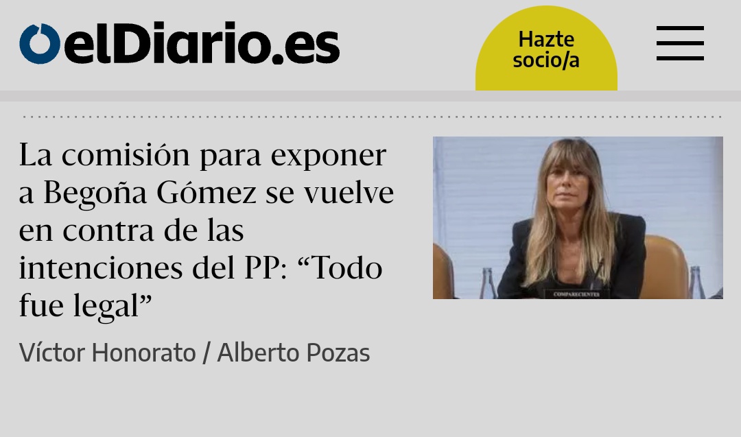 Hay dos noticias: un artículo sobre Begoña Gómez y la Inquisición (?) y otro diciendo que la Comisión de investigación del PP en la Asamblea de Madrid todo mal.