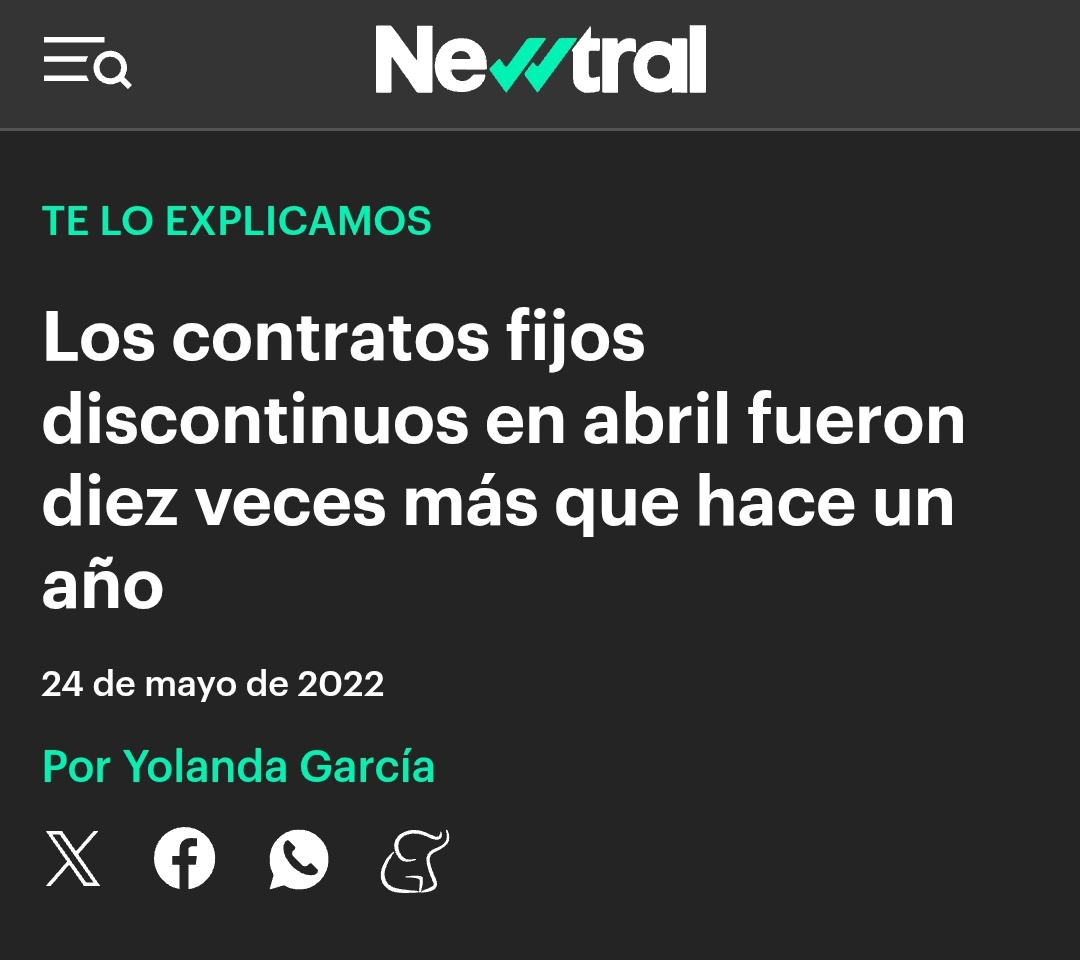 En abril de 2022 los contratos fijos discontinuos habían aumentado un 1273% con respecto al mismo mes del año anterior.