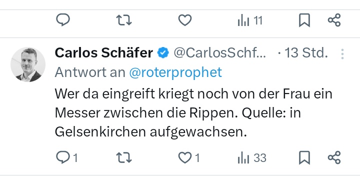 Unter einem Video, in welchem ein Mann einer Frau gegenüber auf offener Straße gewalttätig wird und niemand einschreitet, gibt es dann solche Kommentare von Männern:⤵️