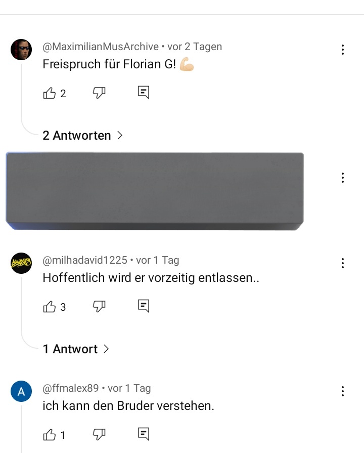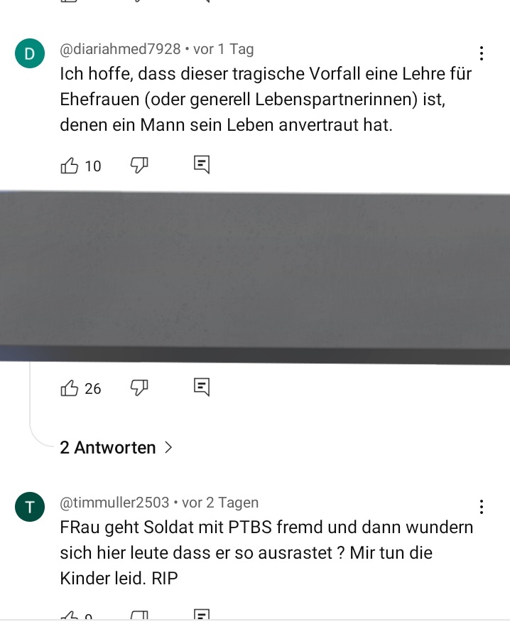 Die Kommentare sind eine Katastrophe, hunderte Männer, die sich solidarisieren und die Morde gutheißen!
