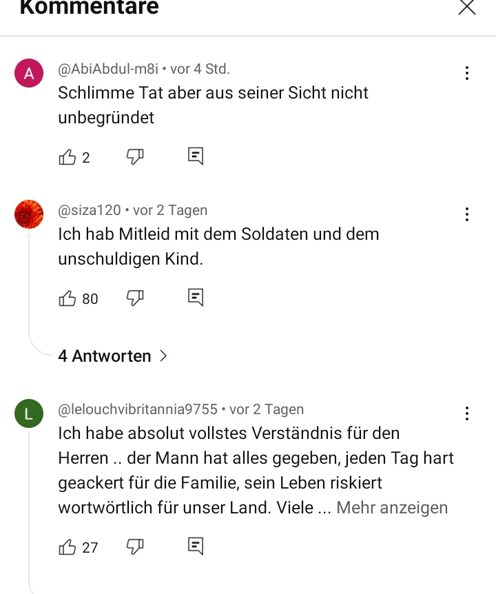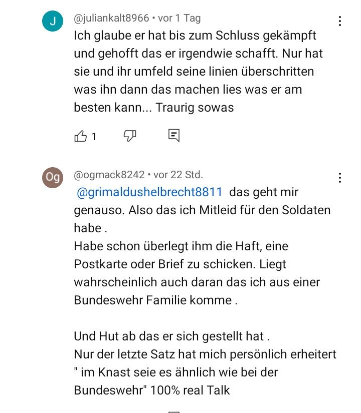 @derspiegel @SPIEGELTV @lisapaus Die Misogynie in dieser kommentarspalte ist so heftig, wie sie mir bisher selten untergekommen ist. Selbst andere Soldaten sprechen ihrem Kameraden Solidarität aus.