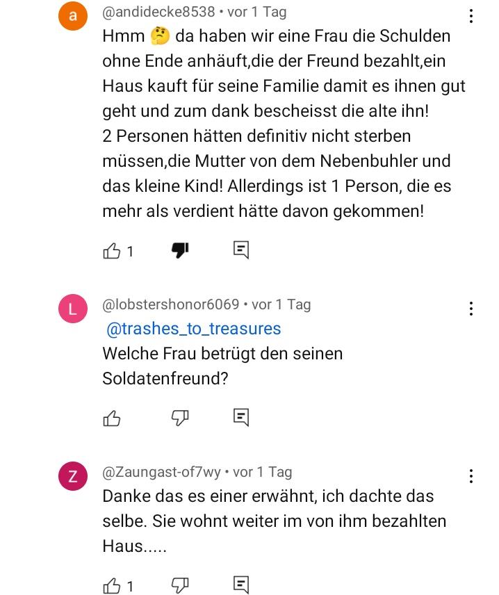 @derspiegel @SPIEGELTV @lisapaus Und glaubt nicht, dass ich hier auch noch ansatzweise alle Kommentare posten kann, ich kann sie nicht mal sortieren, ich habe so viele Screenshots, dass ich nur wahllos draufklicken kann. Es ist unfassbar! Spiegel TV sieht keinen Grund die Kommentare zu sperren.